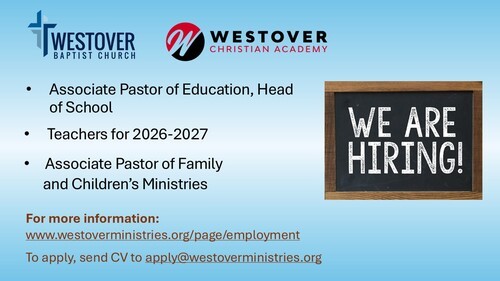 Westover Baptist Church is a welcoming and loving church family where believers grow through the faithful teaching of God’s Word. If you desire to move beyond the surface and and gain a deeper understanding of the Scriptures , we would love to walk that journey with you.
